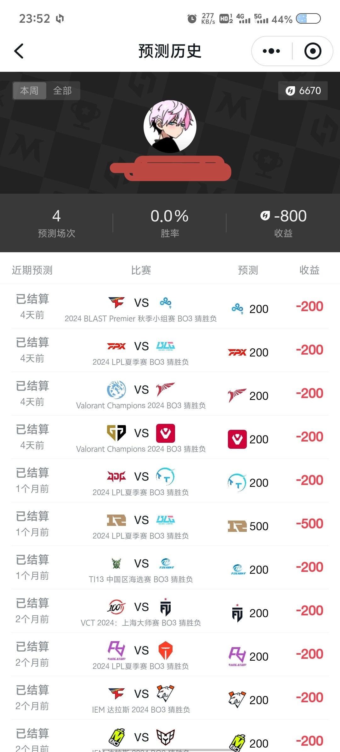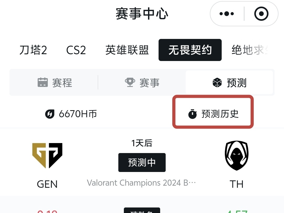 如果你想查看自己預測的那些賽事,那麼可以點擊預測歷史就可以看到你近期預測的那些賽事。