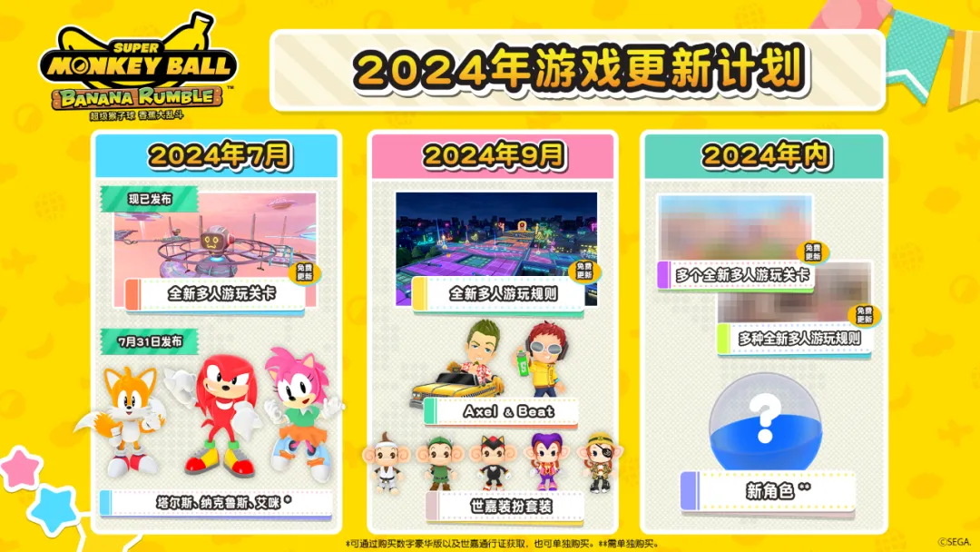 《超級猴子球香蕉大亂鬥》推出免費多人關卡和三位付費DLC角色。