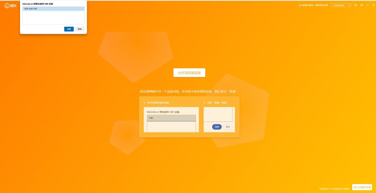 点击允许浏览器连接,左上角选择识别的键盘进行确定