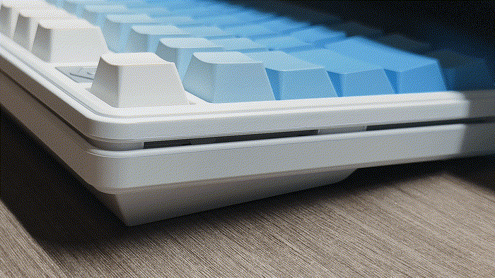 键帽方面采用的蓝白侧刻,整体的颜值很高,在目前的磁轴键盘市场,原厂自带侧刻的应该只有他家了,并且因为是PBT材质的原因,整体的手感细腻,触感干爽,长时间使用下来也不容易打油,不管是游戏也好,还是办公也好,整体的体验都是比较优秀的