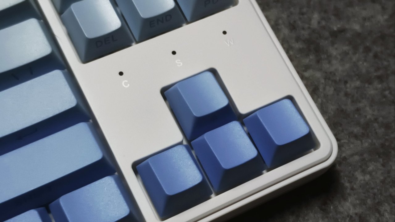 我觉得这其实也是一个比较细节的卖点,毕竟大部分人键盘可能也不会买太多,公司也好家用也好可能都是同一把。所以如果日常遇到办公的情况或者输入游戏账号密码,这三个指示灯都能给你带来一定的便利,是有利没有弊的
