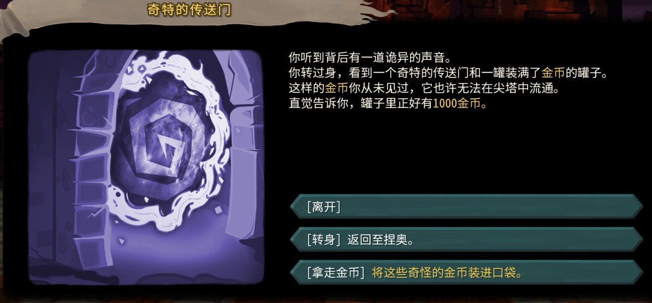 這個mod是一個比較影響遊戲體驗的mod,當你厭倦了涅奧所給予你的東西時,你可以選擇開局扭頭進入傳送門(注:傳送門所給的東西則與你上一把所獲得的分數相關。)