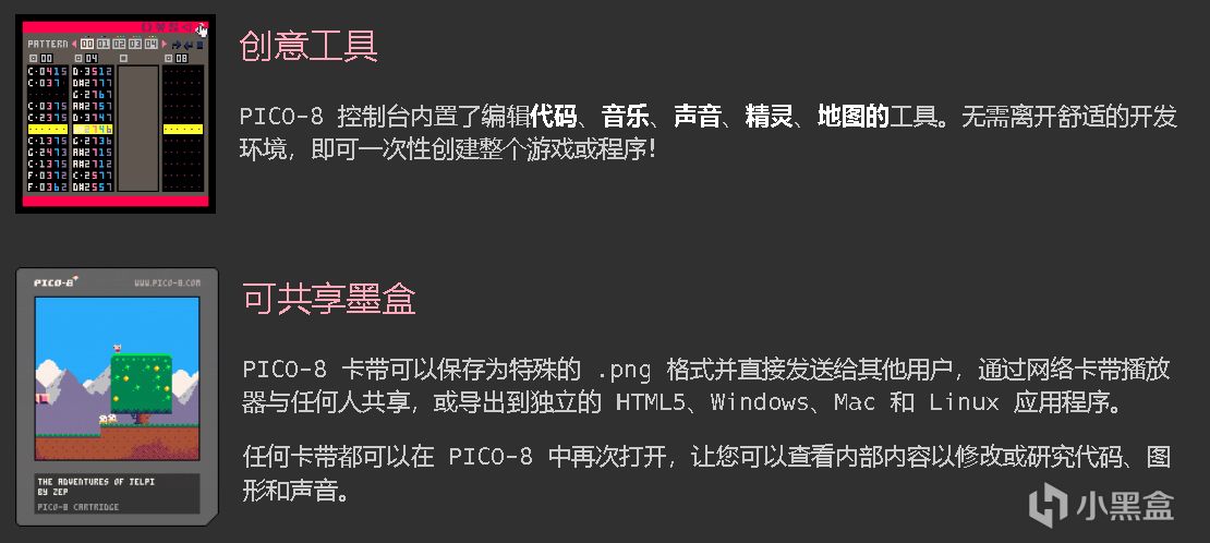 1、集成lua编程、绘图、音效、作曲、游玩游戏为一体的幻想终端机。