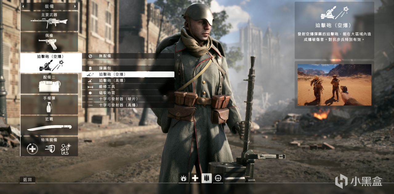 空爆迫擊炮是專門針對步兵的,而迫擊炮這個武器在戰地1裏就有點超模,可以在很遠的距離限制敵方步兵