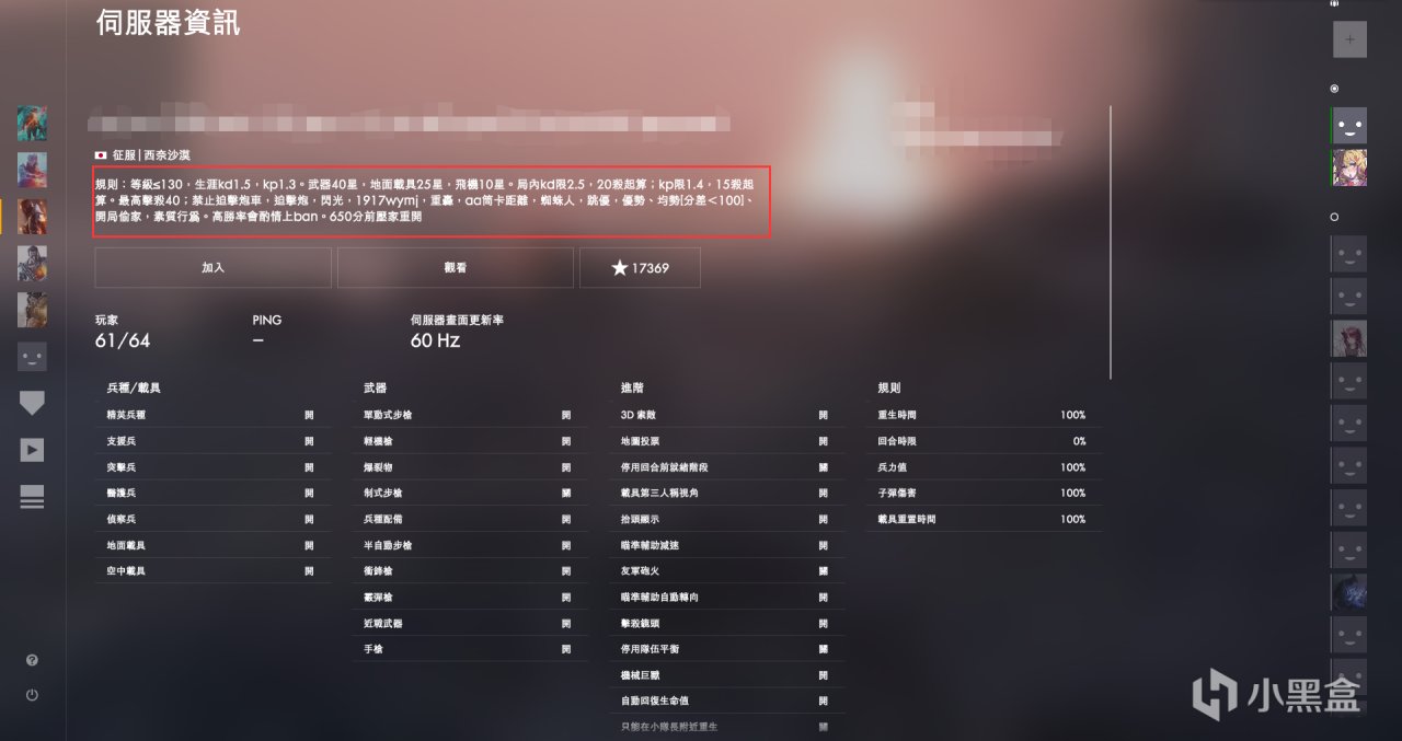 記得去服務器詳情裏看具體規則。