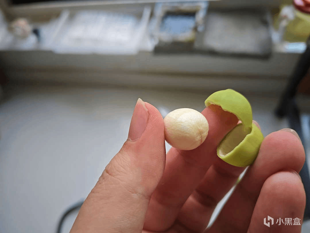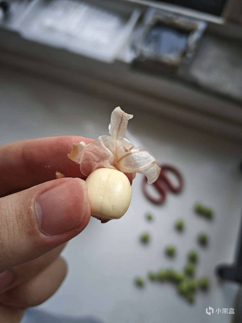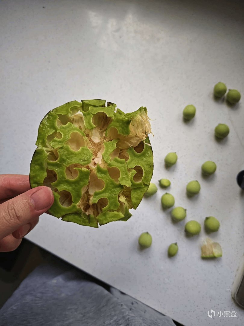 但還好,我爸聰明。他從我手裏拿走一個,剝開蓮蓬取出裏面的蓮子(圖片是後面補拍的)