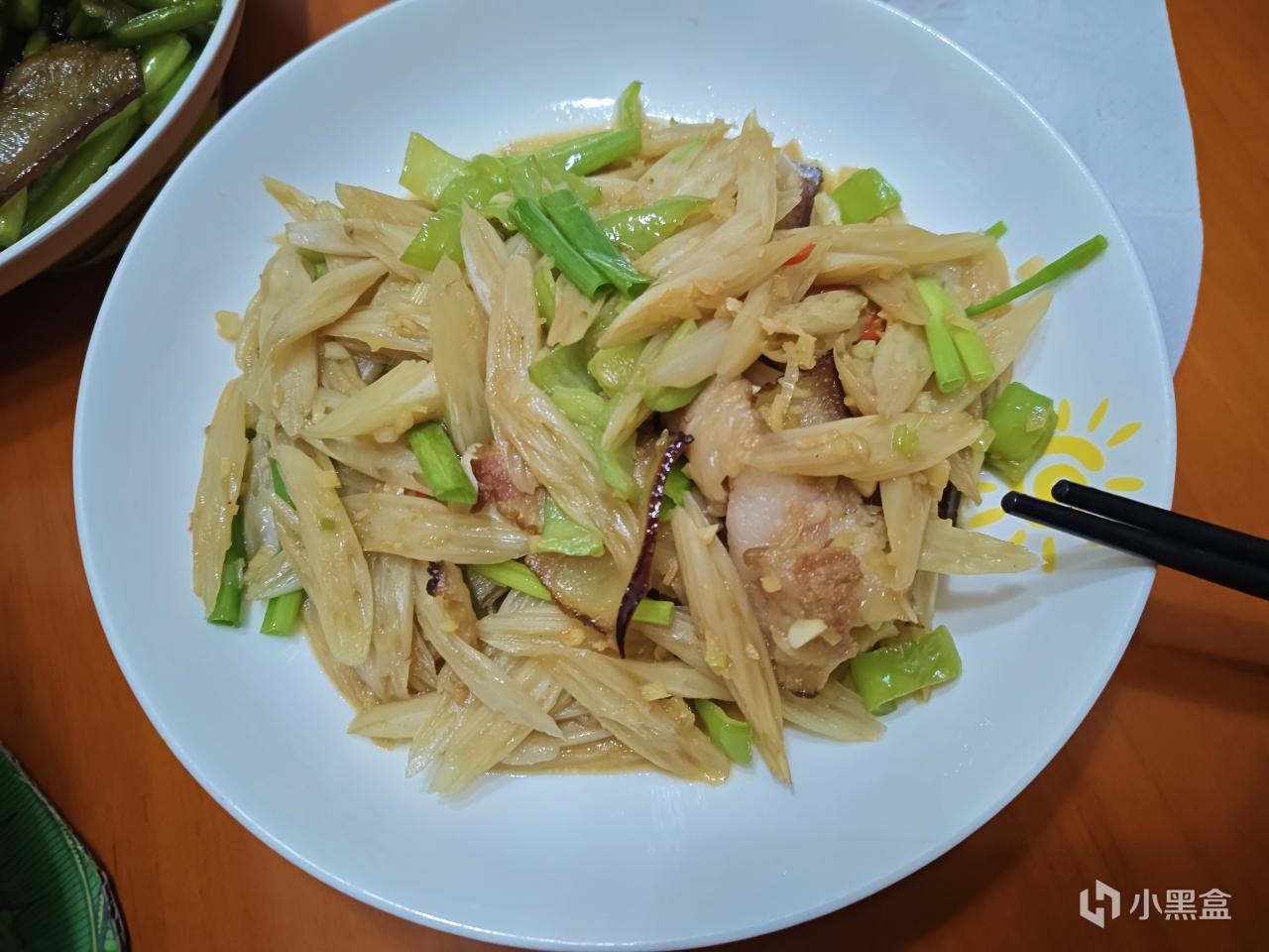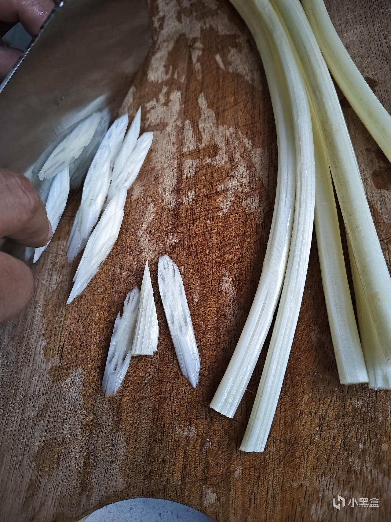 按理來說應該切段,但我爸切的是薄片。總之相信廚師,畢竟不是我炒,不能瞎指指點點。