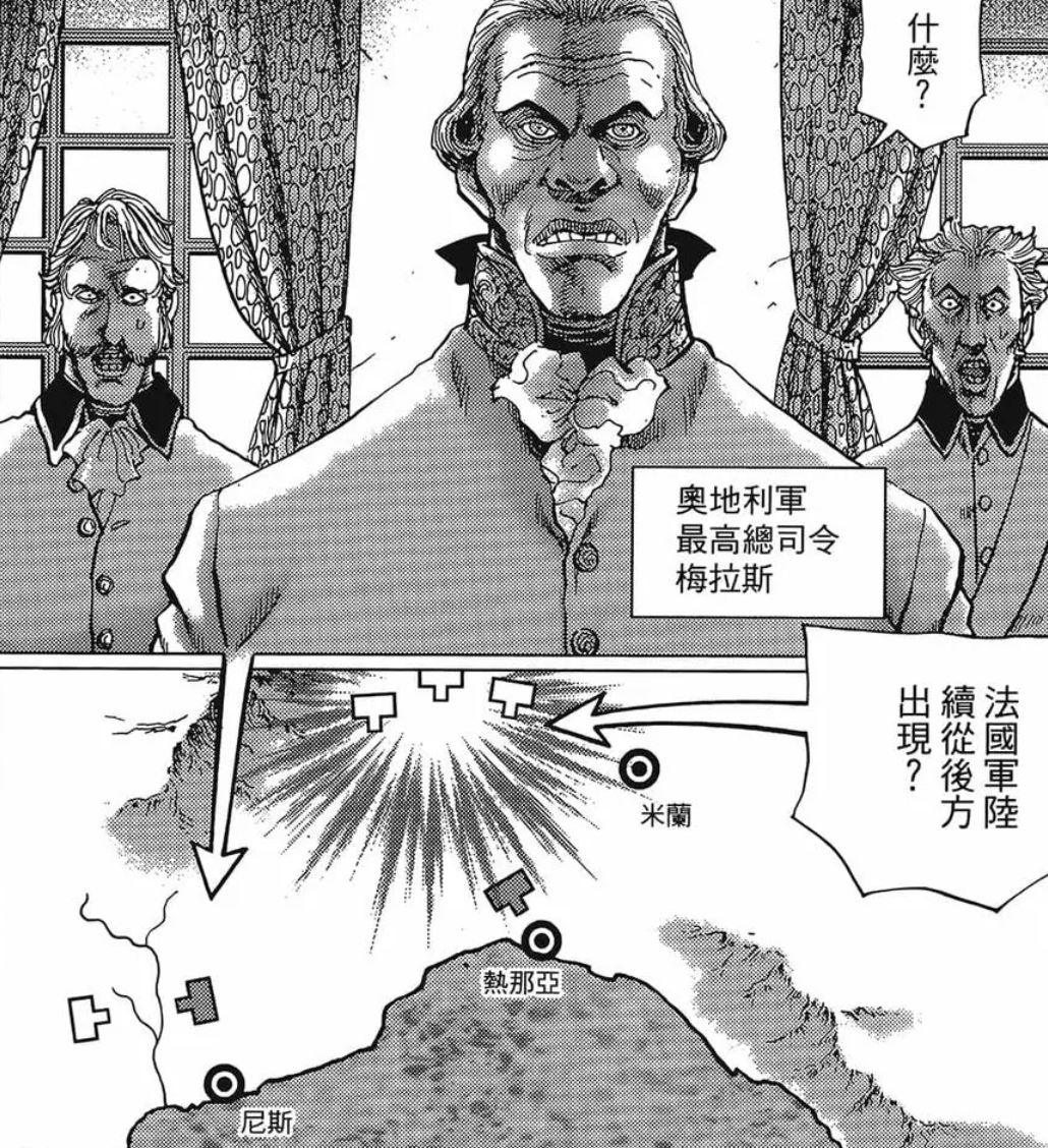 四年后,法奥战事再起,意大利北部诸城邦纷纷脱离法国控制。奥地利老将梅拉斯将法国将军马塞纳围困在热那亚,准备一举将其歼灭。成为第一执政不久的拿破仑并未直接从法国南部狭窄的滨海地区增援马塞纳,而是出其不意地翻越阿尔卑斯山并再度控制米兰,从而切断了梅拉斯的后勤补给线与退路,逼迫其在马伦哥附近决战。