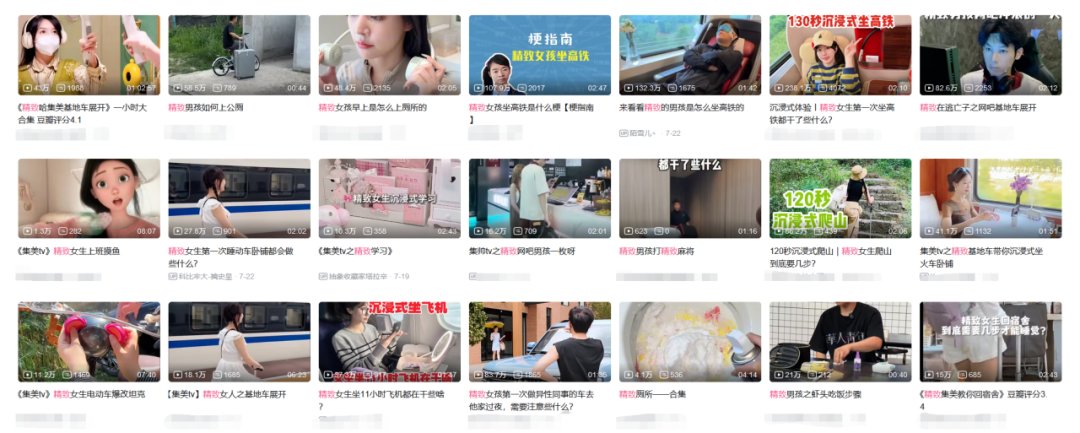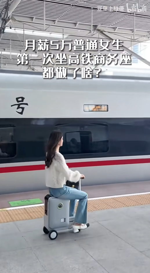 这类视频的标题出奇的一致——“月薪5万的女生第一次坐高铁有多精致”“精致女生第一次出差坐高铁有多忙”等等——核心点是“精致”二字。
