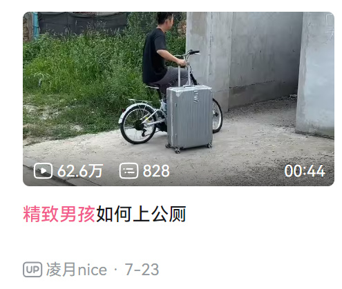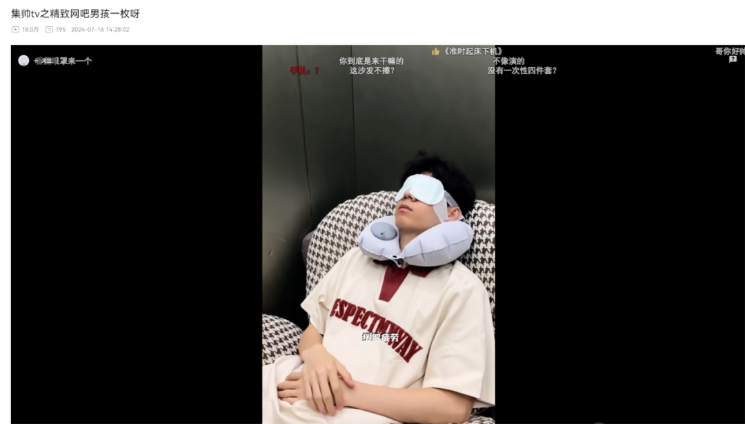 这一波精致潮流毫无意外的迎来了反讽大军,一波“精致男孩”系列紧跟热点,他们用抽象去解构抽象。其中“精致男孩上网”视频,up甚至为了模仿买了全套的基地车道具,第一次看的时候真的分不清是真的还是反讽。