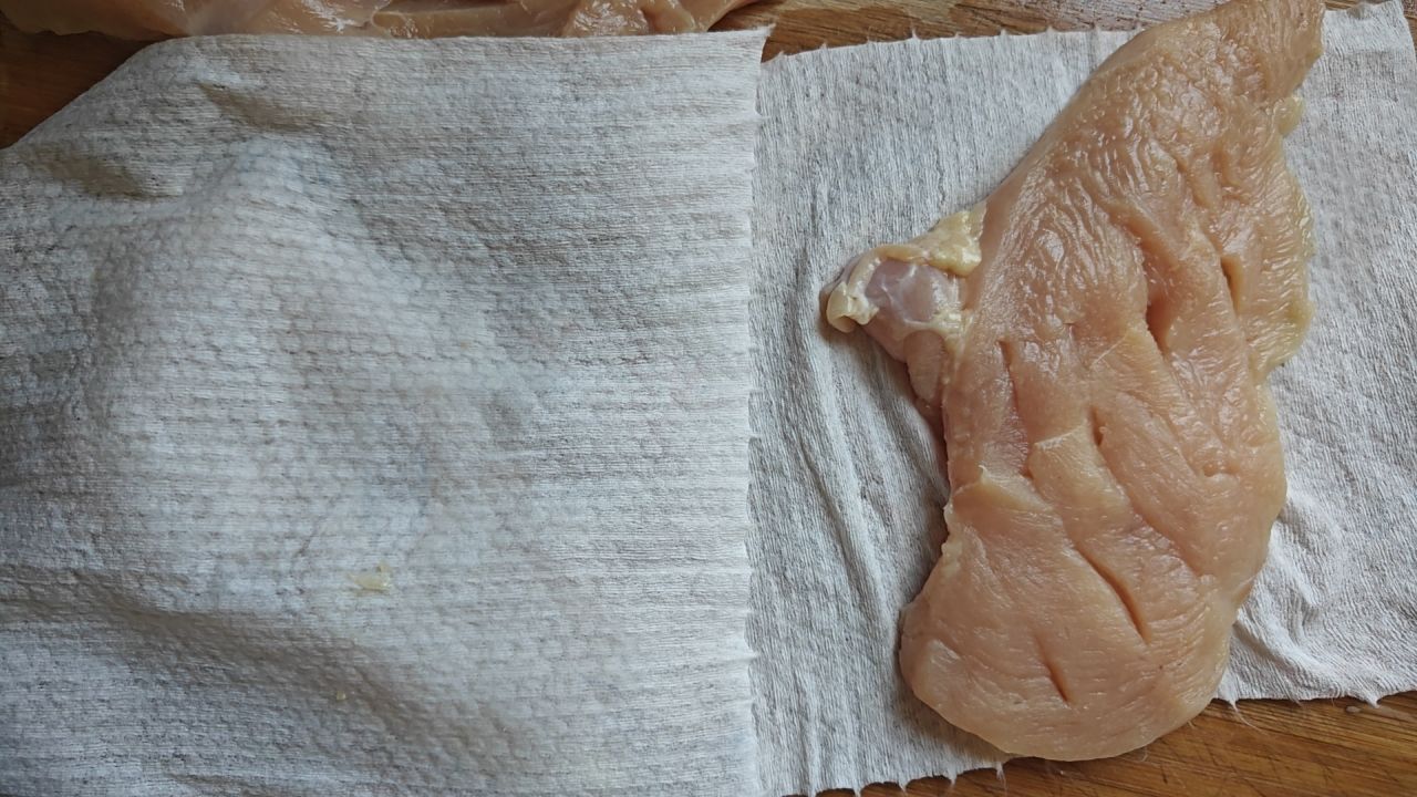 然后用厨房纸吸去多余水分