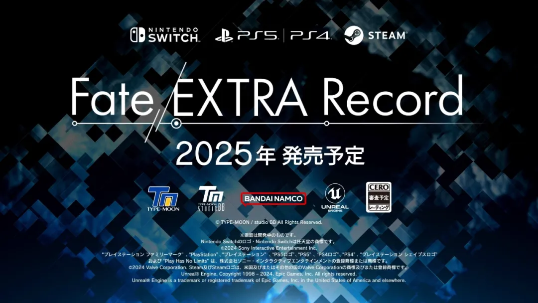 《Fate/EXTRA》10週年高清復刻作《Fate/Extra Record》最初於2020年公佈,FGO Fes2024期間發佈的最新預告宣佈,這款遊戲將於15週年之際,2025年推出。