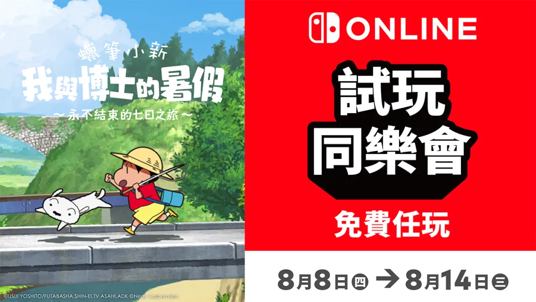 香港任天堂宣佈將於8月8日12:00-8月14日7:59期間舉行《蠟筆小新 我與博士的暑假 ~永不結束的七日之旅~》試玩同樂會,期間玩家可以暢玩本作。