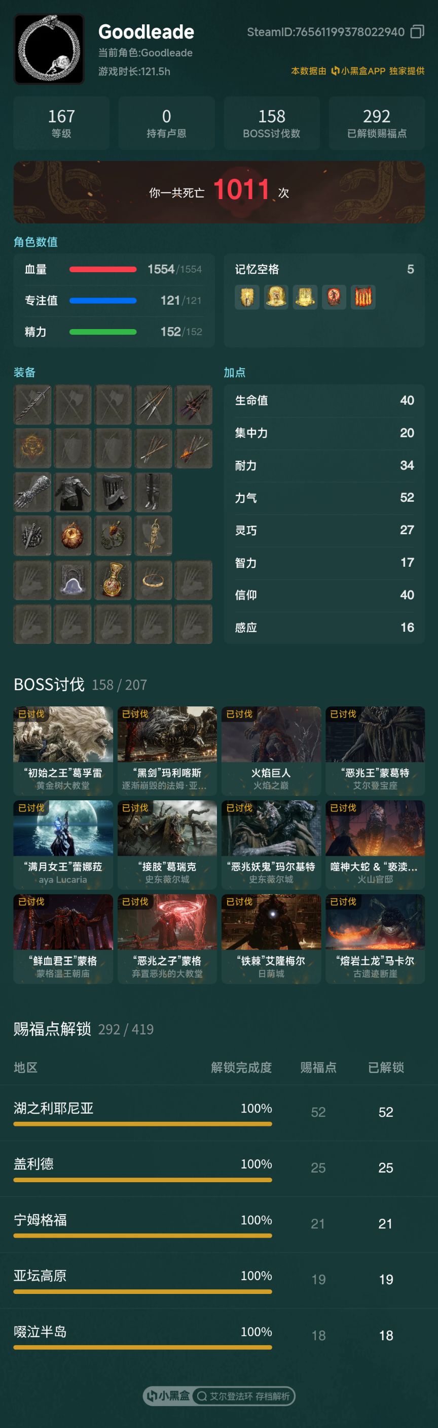 在黑劍身上我找回了當初打大樹守衛的感覺。那種不斷磨練,就像升級一樣的感覺,我的熟練度隨着黑劍的血量逆向推進,在一次次過招之後,我開始懂得他每一招的變換,在每一次空隙中找到進攻的時機,由於我個人玩的是特大劍,我發現每次奔跑前進的拖刀完全可以避開第一次攻擊(如果對方也是準備攻擊狀態的話),然後就是拖刀打第一下向後翻滾規避黑劍的前戳;第二個攻擊時機可以在他準備用爪子在地上劃360°時向前砍一下,在他攻擊路徑反方向滾再戳一下;第三個輸出時間是他雙手共持,向地下砸,隨後炸開石頭下落這段時期,掌握好時機翻滾即可。黑劍的二階段,其實到現在說最多隻能會躲一點但是不太會看,譬如他的奪命三連加衝刺斬擊,如果我第一下或第二下中了基本就可以開下一輪了,我硬直86也頂不住。所以我意識到二階段我連摸他的招數的機會都沒有,因爲基本都是直接就被連死了,可能是也是因爲太怕了老是喜歡滾和喝藥。於是我開始研究新打法,把我那個拉達岡的糜爛烙印卸了,火對蠍卸了分別換成加物理免傷和延長禱告效果持續時間的(一階段打的快的話一開始上的黃金樹的恩惠可以稍微應對二階段的燒血)。我甚至開始復刻起當時打黃金守衛的盾反,但還是毫無卵用,後面看攻略拿到可以彈開黑劍的劍變成金色時的攻擊的物品,但也是根本不會彈(自從打葛瑞克之後就再也沒有拿過盾了,以及不應該浪費這麼寶貴的機會沒有好好的去找熔爐騎士老師練彈反)。所以最終的結果是我還是操起了狩獵神祇大劍,因爲它出手貌似比大劍快一些,雖然知道完全沒有機會放女王黑焰(哪怕一階段打出硬直也沒必要用,會直接進二階段動畫),在上了幾個禱告後就上路不斷磨鍊了。說實話,我這種打法其實是很蠢的,因爲有彈反不用,有可以減輕大部分壓力的骨灰不用,就像認着死理一樣: