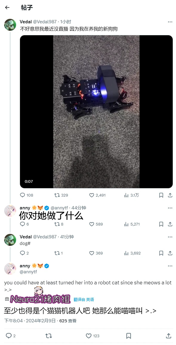 什么?你问我为什么牛肉的b站号名字叫“Vedal和Neuro-sama”而没有evil neuro?这有什么奇怪的,她自己不想来罢了。