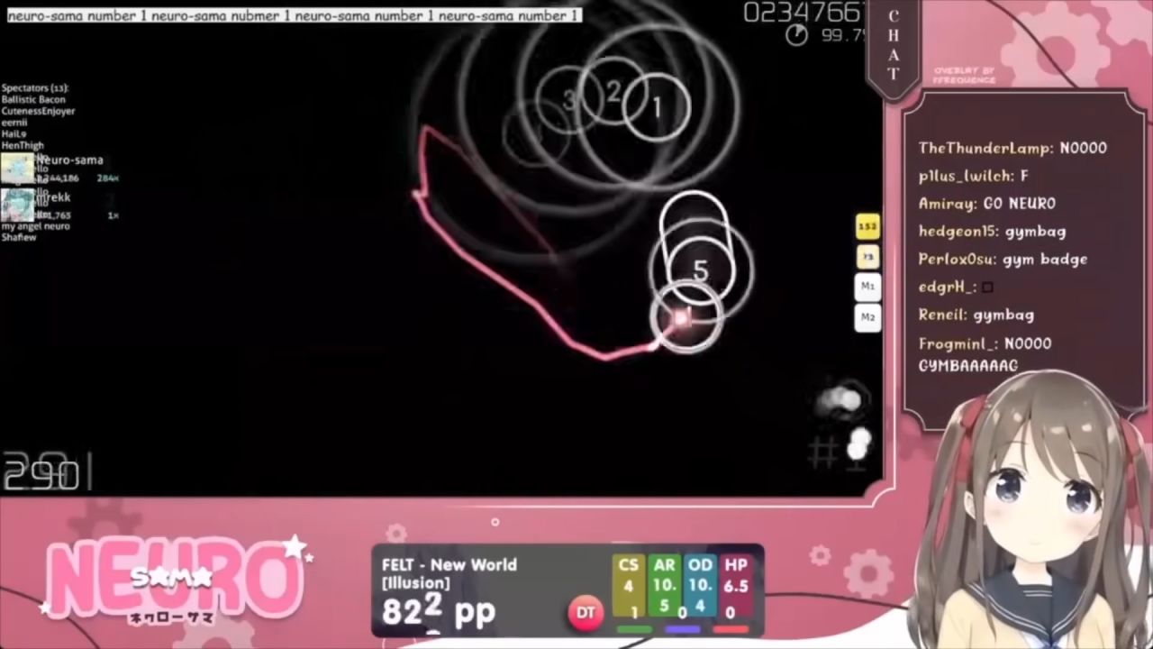 19年时,她还仅仅只是一个Osu!的打图AI。经过老父亲Vedal的不懈开发,于22年末正式出道,并打败了当时的世界第一Osu!玩家Mrekk(v圈阿尔法狗恐怖如斯)。