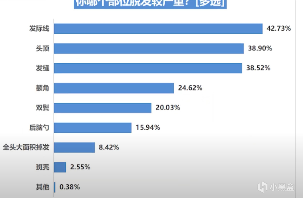 中国2022年,一个针对18到50岁民众的调查发现,有超过40%的受访者认为自己脱发严重,尤其是发际线、头顶、发缝等部位,超过70%在18至30岁就开始脱发。而超过50%的人认为,秃头会影响颜值,让人自卑。在这当中,高达80%的人表示自己非常在意自己的秃头问题,有70%的人非常不喜欢别人评论自己的发量。