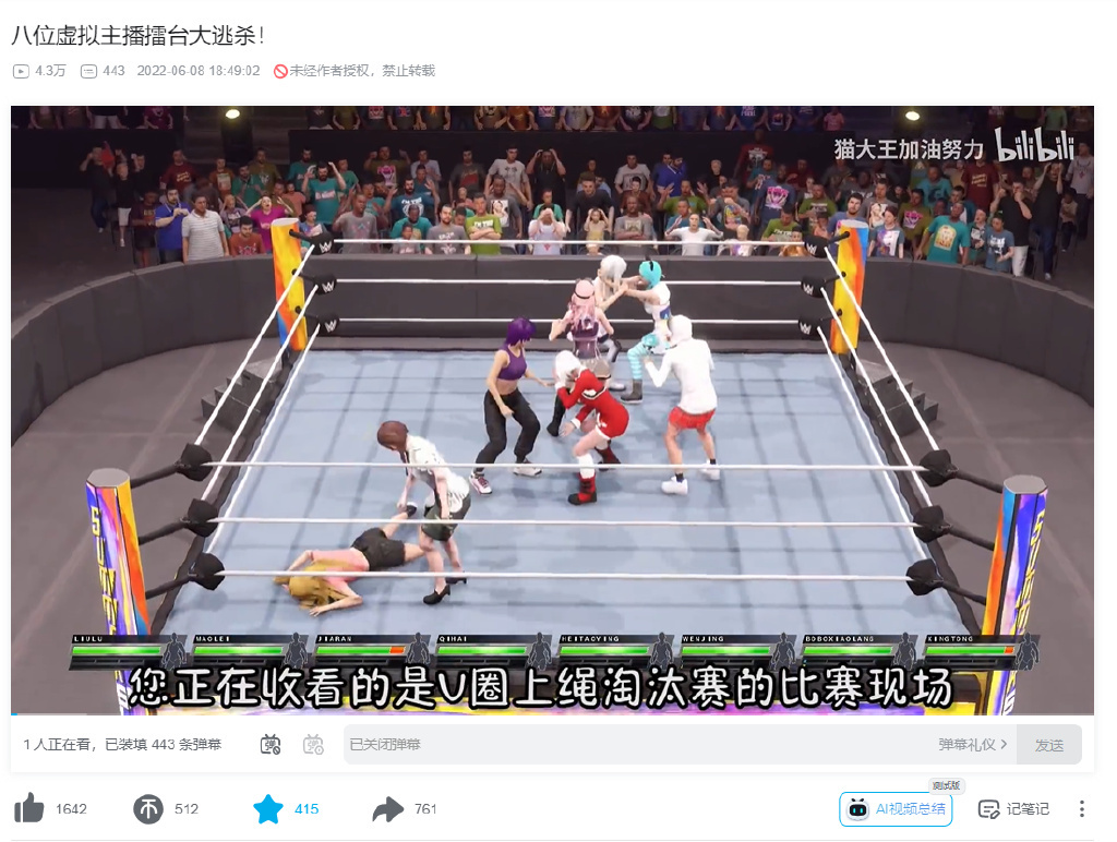 其實現在大夥在B站搜索,就能看到一大堆相關內容,比如這種將八名虛擬主播塞到擂臺開一場大逃殺的“解說視頻”。