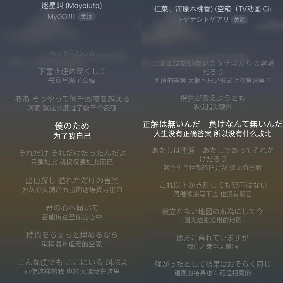 迷子乐队和刺团乐队的歌词很好反映了Z世代年轻人的价值与追求 图源:《迷星叫》与《空之箱》歌词