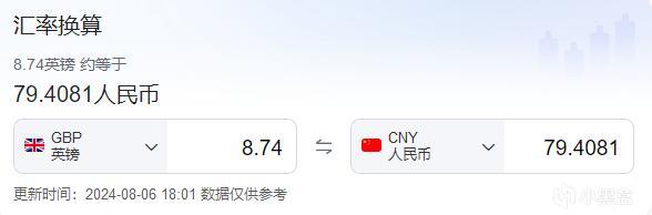 當日匯率 8.74£=79.40¥