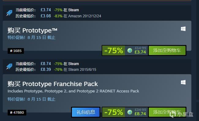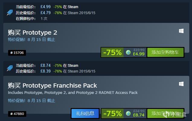 虐殺原形系列大包(Prototype)SteamDB頁面