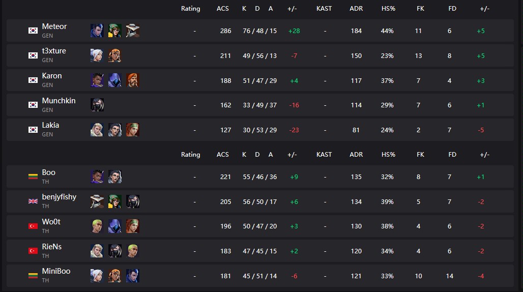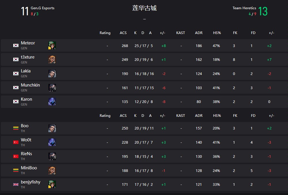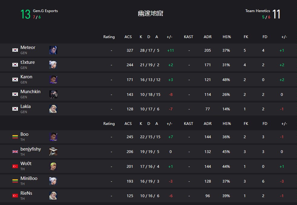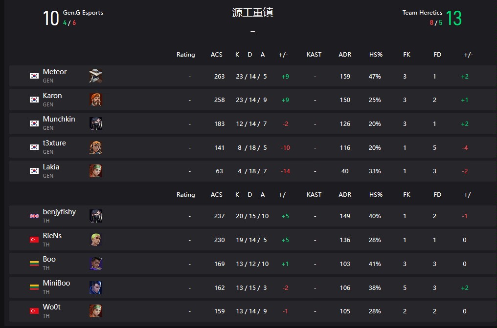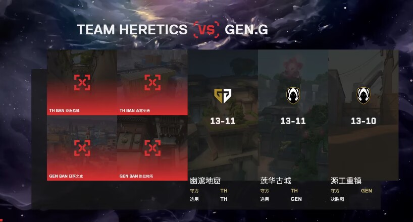 GENG圍繞夜戮進攻包點,TH則靠蓋克+星墜的回防拆包,雙方4-4戰平後互有勝負,但GENG憑藉更出色的紀律和道具配合更勝一籌。