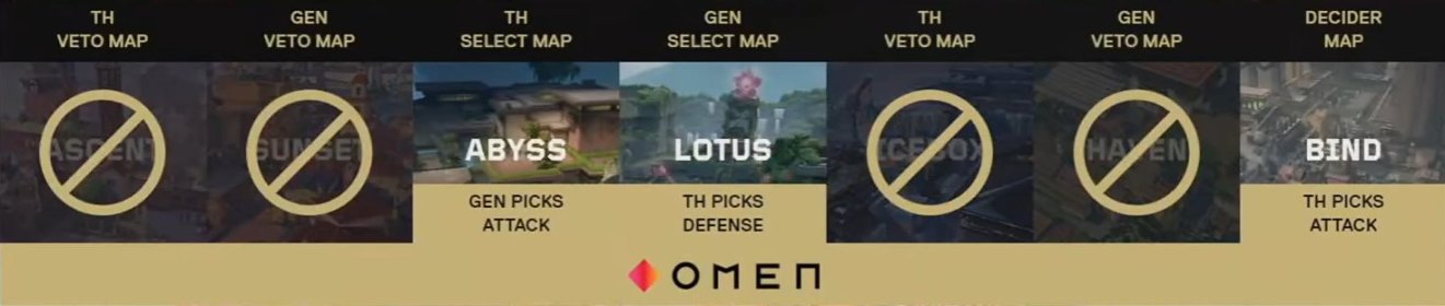 第23回合,GENG嘗試C大反清,沒抓住TH隊員,反而讓TH抓到機會包夾C點,TH率先拿到賽點,GENG叫出最後的暫停,最後一回合,TH三把大狙加奧丁穿點,抓到a點單掛karon,翻盤拿下圖二對手自選圖,雙方大比分戰平!