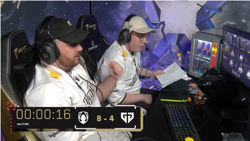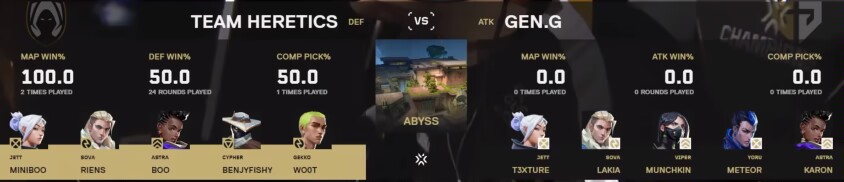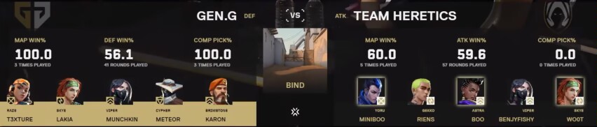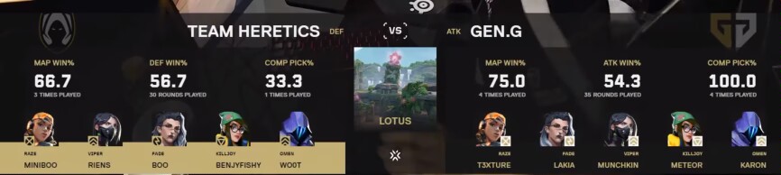 今天是兩把總結是EMEA賽區對戰太平洋賽區,賽前幾乎所有人都看好GENG,覺得狀態不好的miniboo加上互有犯病的隊友碰瓷不了亞一決t3xture和他的大師賽冠軍隊友,尤其是在TH和FPX依舊打的難解難分,而GENG已經虐了SEN後,大家一致覺得GENG狀態未曾下降,是奪冠大熱門,這一點從"支持率"和兩隊最近的賽況也能看出。