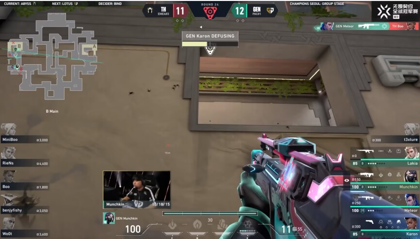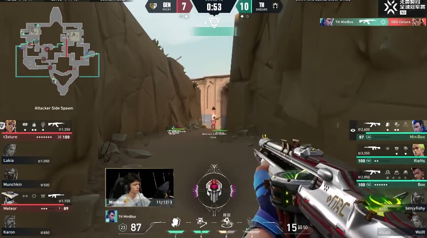 但緊接着miniboo英雄ak帶領TH完成ECO翻盤,第18回合,t3xture先開槍馬完被人反秒,TH緊接着再拿一分來到GENG 7-11 TH,GENG叫出暫停,又將比分追到了10-11