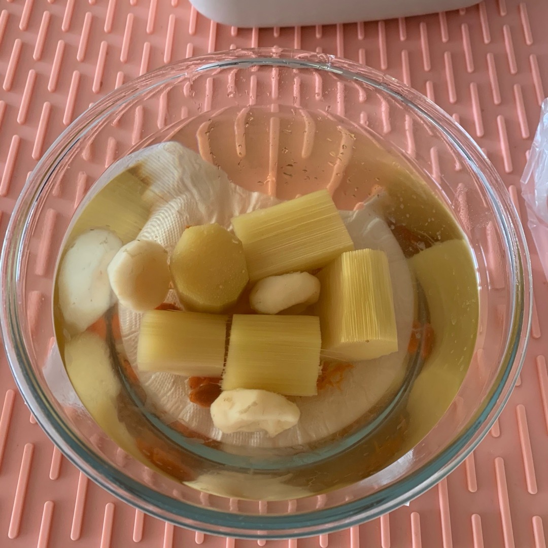 【做法】选用茅根50克,竹蔗300克,马蹄300克,所有材料洗干净,竹蔗砍成小段,对半再剖开,马蹄切去头和底部,大火烧开15分钟后,转小火再煮30分钟。