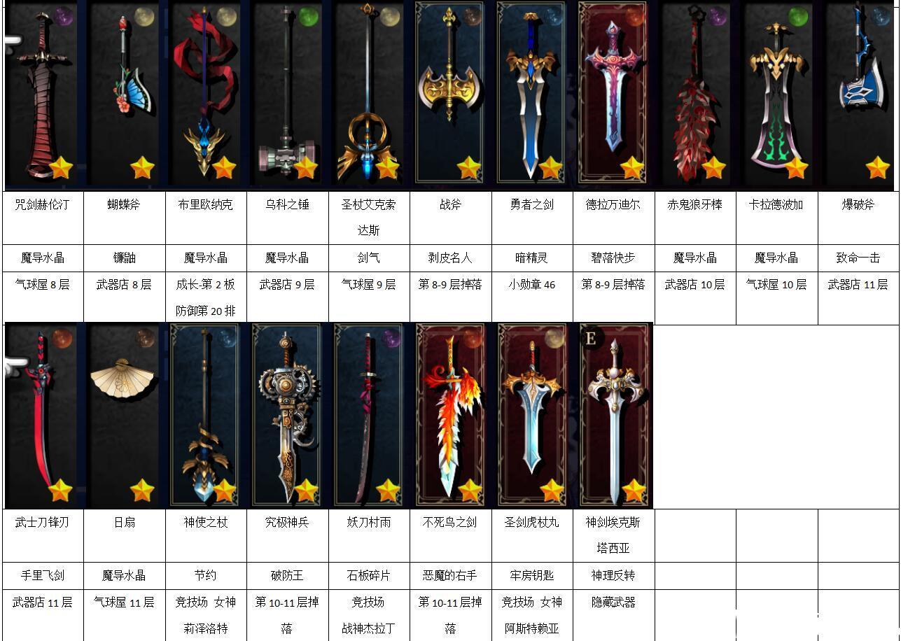 本作武器裝備主要來源爲:武器店兌換、洞窟內氣球屋兌換、成長寶箱、洞窟內隨機掉落、競技場獎勵、會長收集獎勵 還有一些隱藏武器 本文核心內容爲隱藏武器的收集