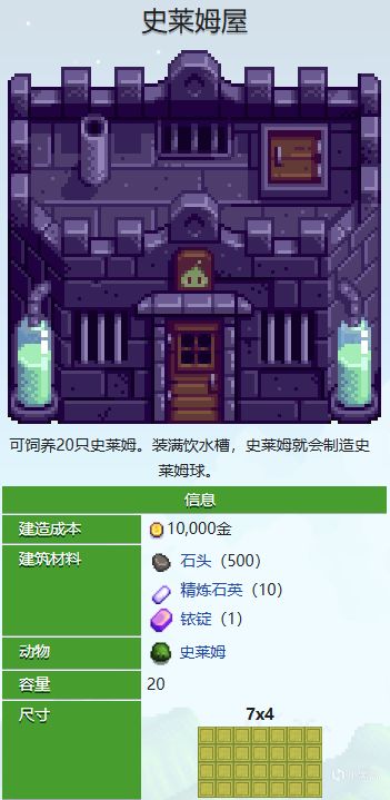 ⑥一旦玩家在農場上建造了史萊姆屋,當玩家(在任意地點)殺死一隻史萊姆的時候,有 1% 的幾率會掉落一個史萊姆蛋。
