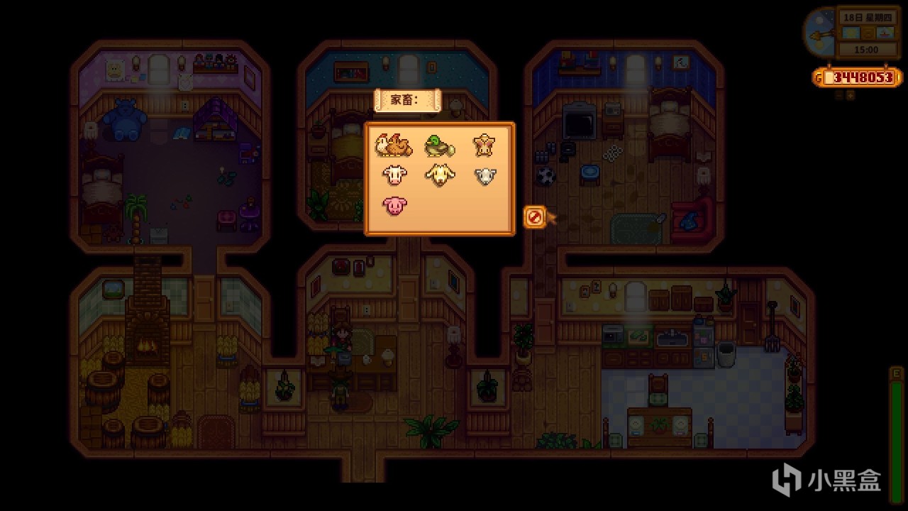畜棚也可以像小屋一樣用來存放寶箱、工匠設備、傢俱等。動物不會受到擺放物品的干擾。