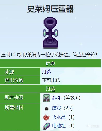 ①將 100 個史萊姆泥放進史萊姆壓蛋器加工製成史萊姆蛋。