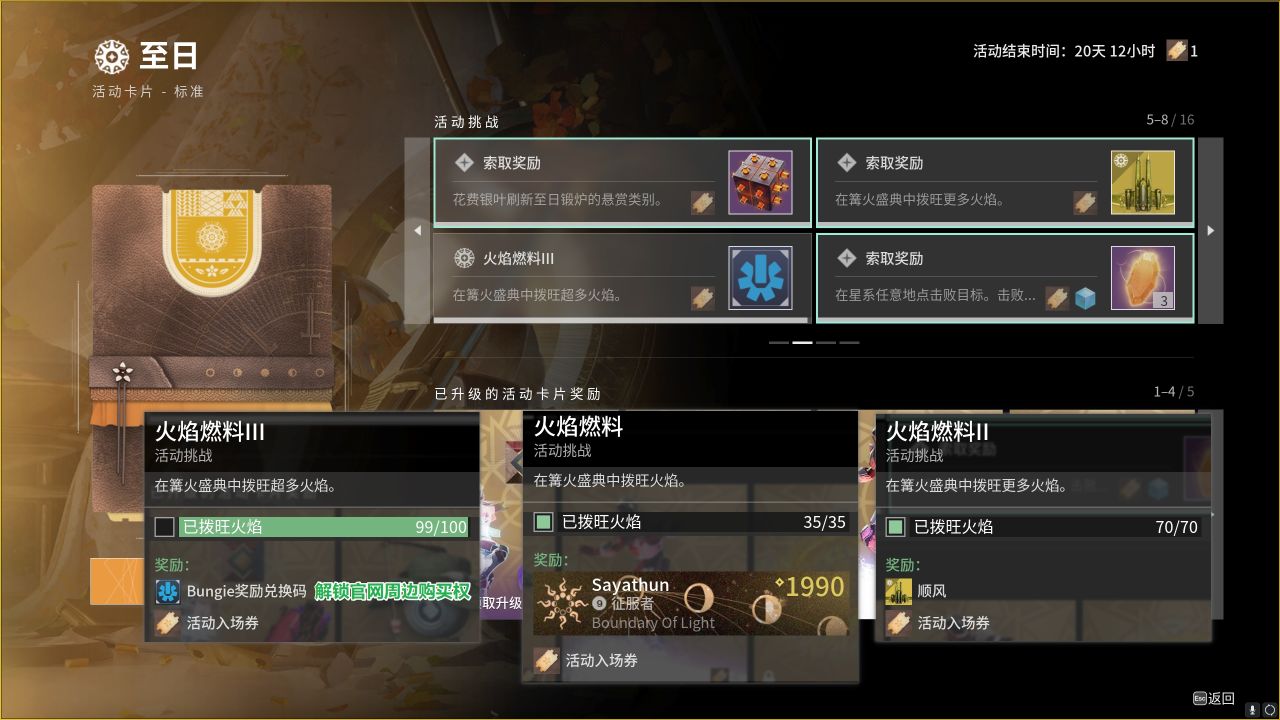 因爲驕陽行動需要穿一整套白光至日護甲打高難度活動,所以不要提前把至日護甲拆了