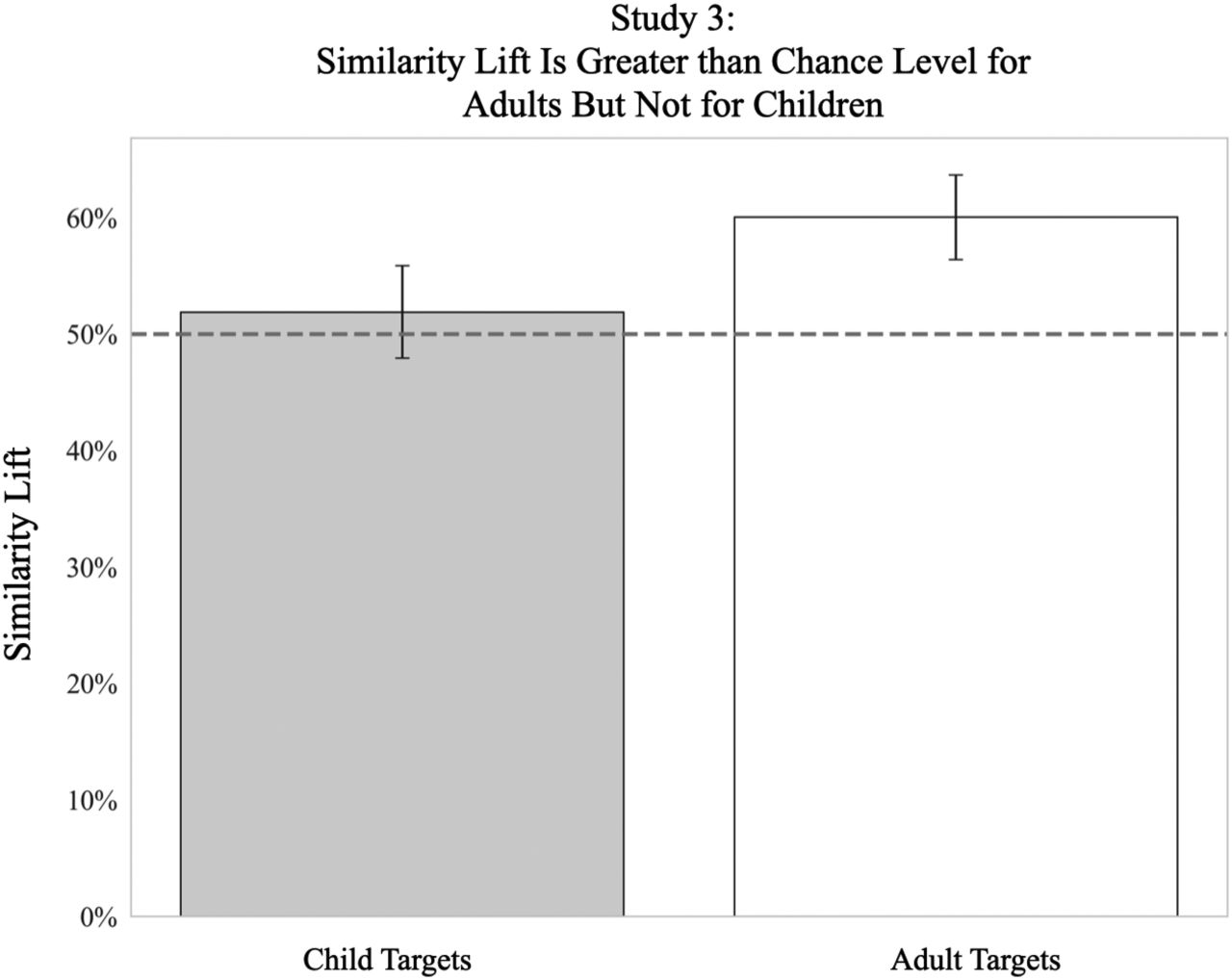 白色柱子:成人和兒童都能正確地將成人的面部與其對應的名字匹配,顯著高於偶然水平。