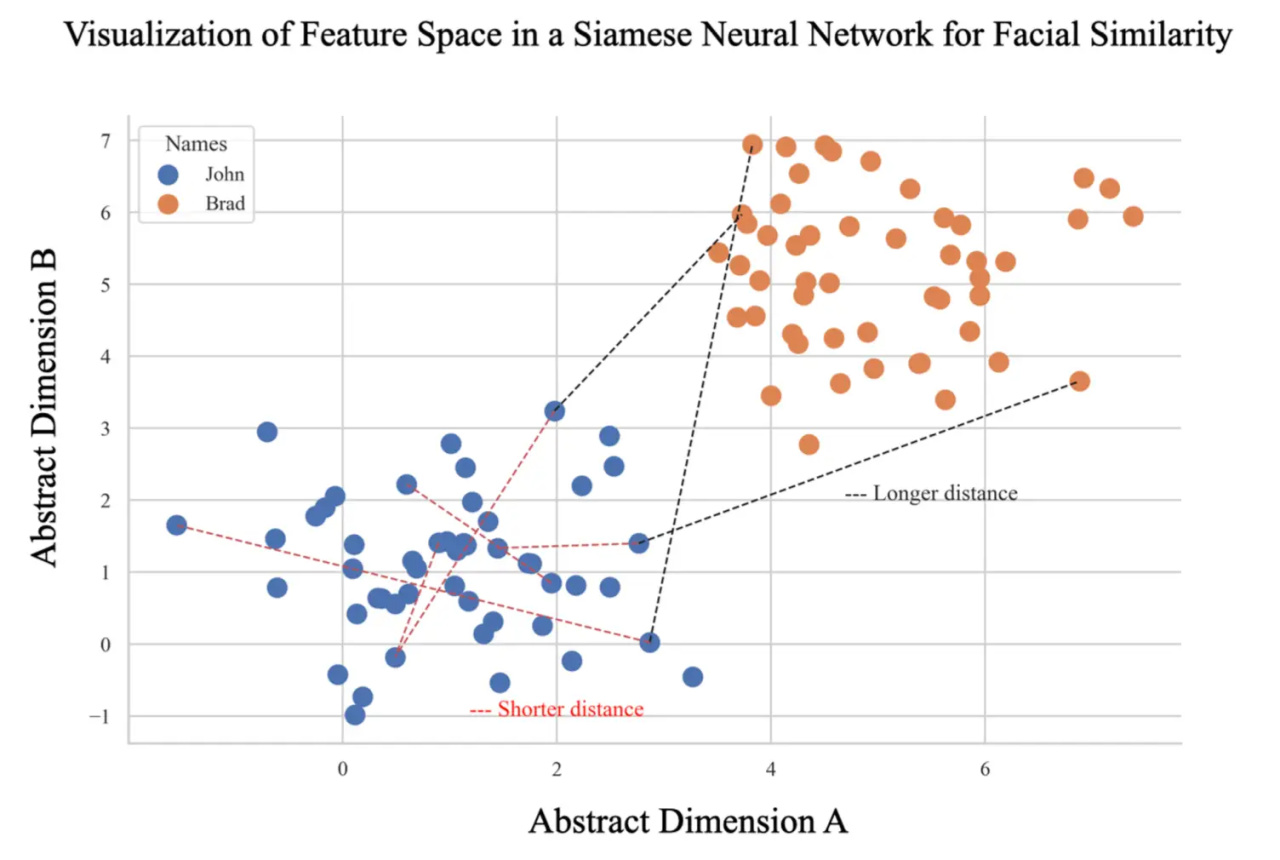 基於Siamese神經網絡的面部相似性特徵空間可視化。