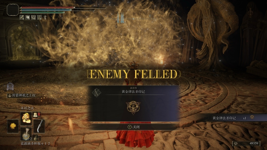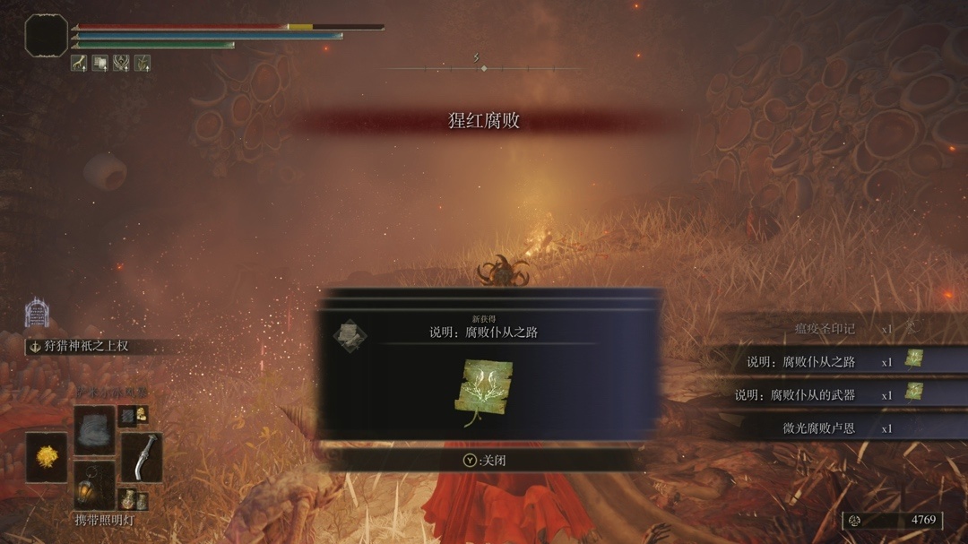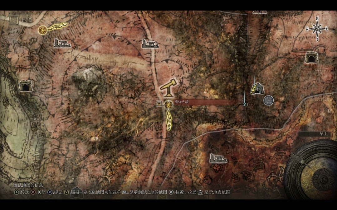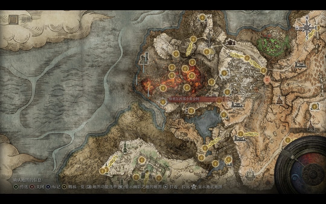 從格密爾西部小黃金樹賜福點出發,沿標記點前進,到達萊多要塞,進門擊殺噴火boss掉落