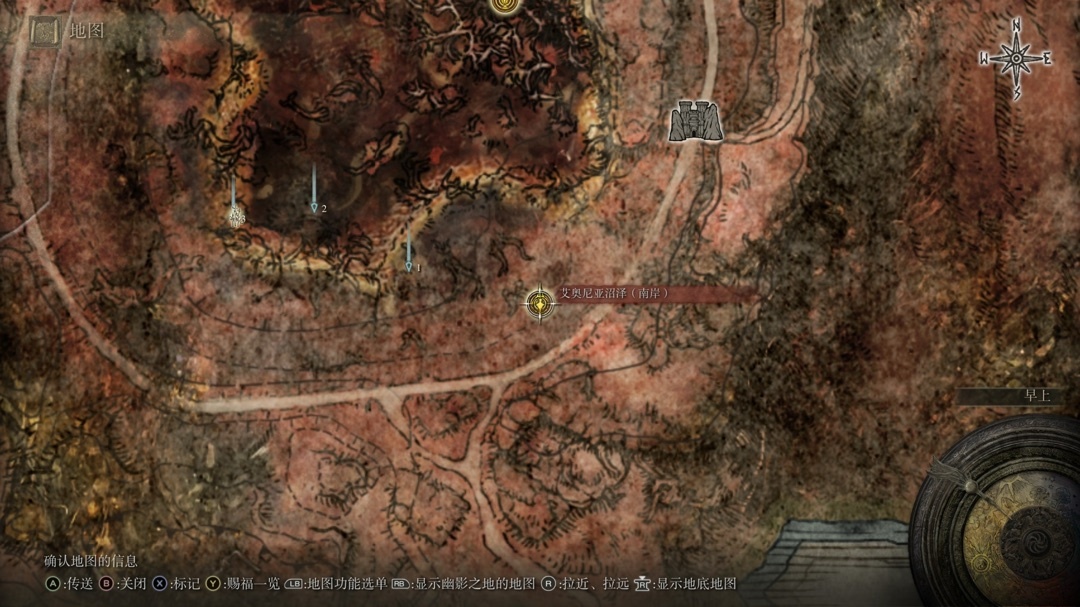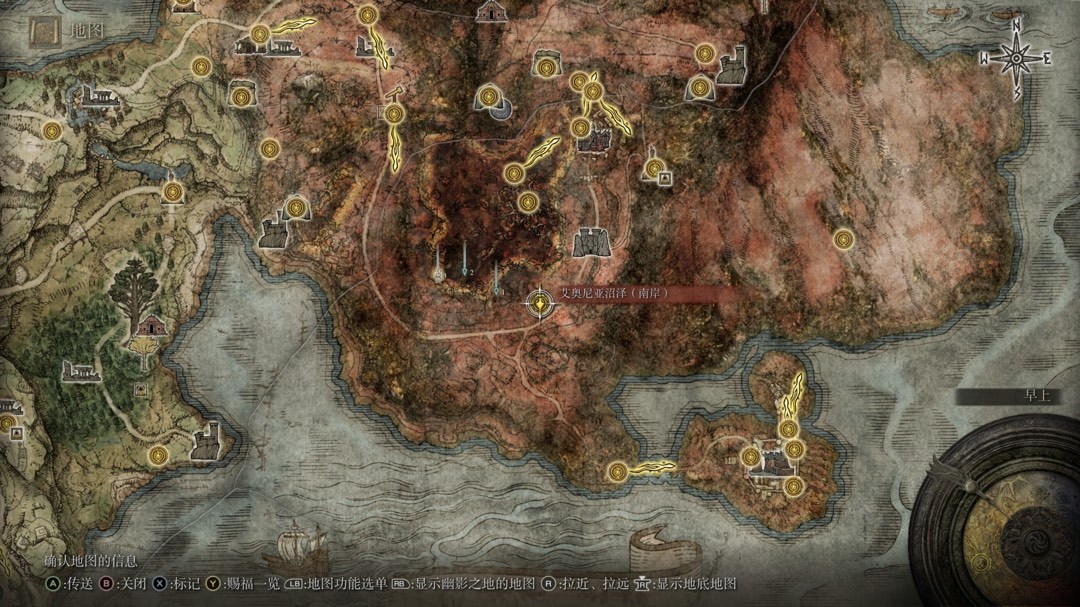 從艾奧尼亞沼澤南岸賜福點出發,沿標記點前進,亮光點處獲取