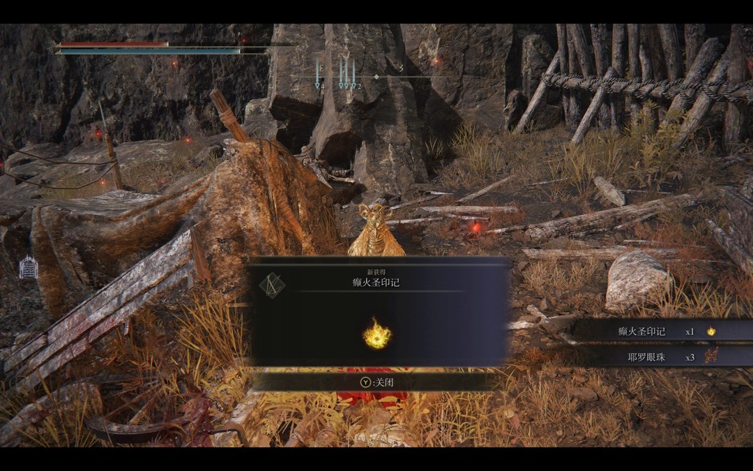 從罪人橋賜福點出發,沿標記點前進,在火山洞窟附近癲火營地亮光點處即可獲取