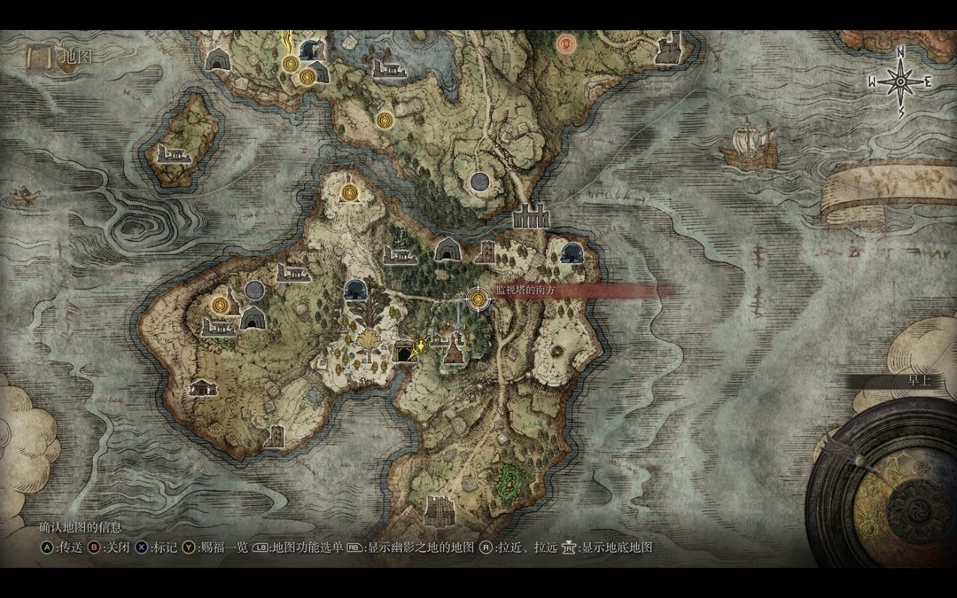 從監視塔的南方賜福點出發,在如圖所示標記點附近亮光處即可獲取