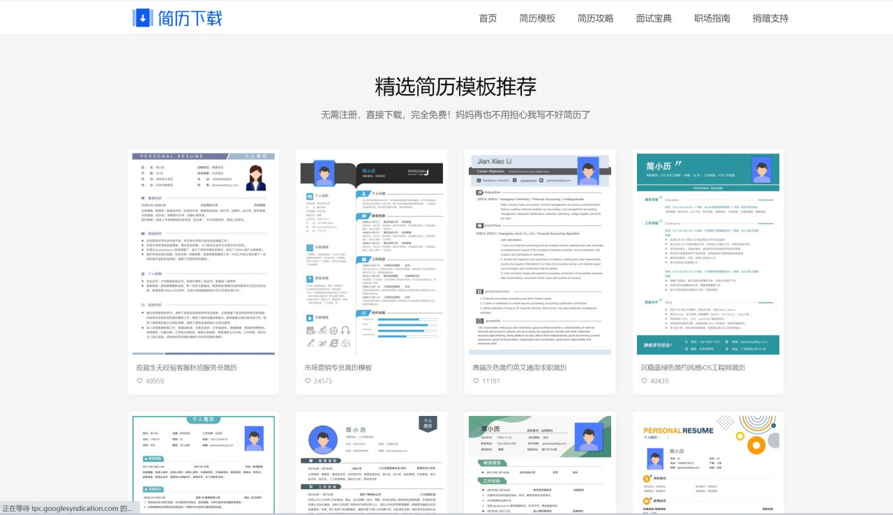 5.簡歷下載。非常不錯的簡歷模板下載網站。免登錄一鍵下載,完全免費無套路,Word格式方便我們編輯修改。無需註冊,直接下載,完全免費!媽媽再也不用擔心我寫不好簡歷了!還包括了簡歷攻略、面試寶典、職場指南供新興打工人蔘考。