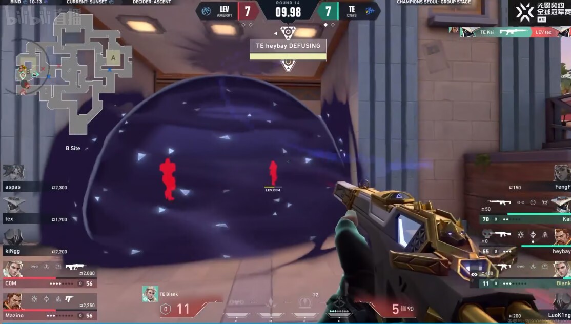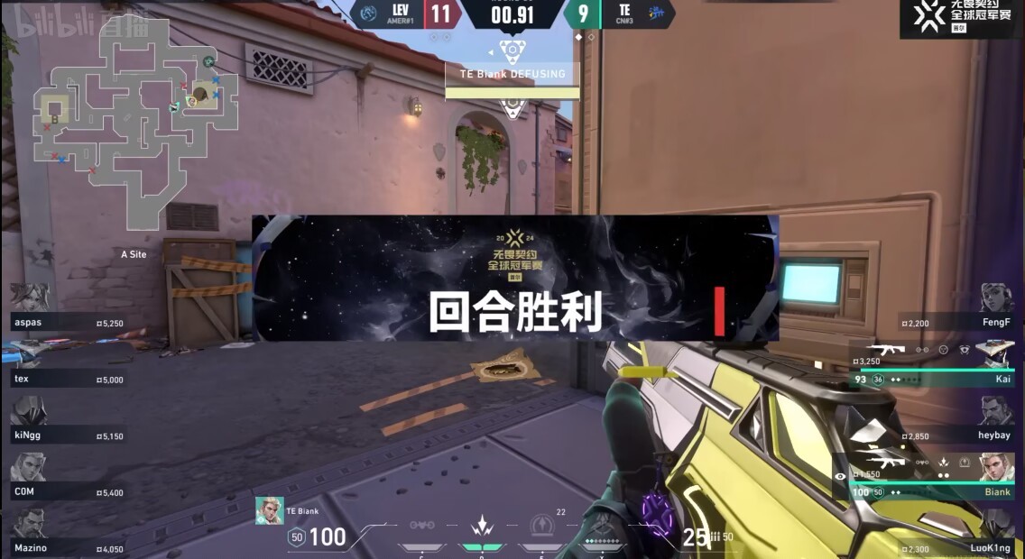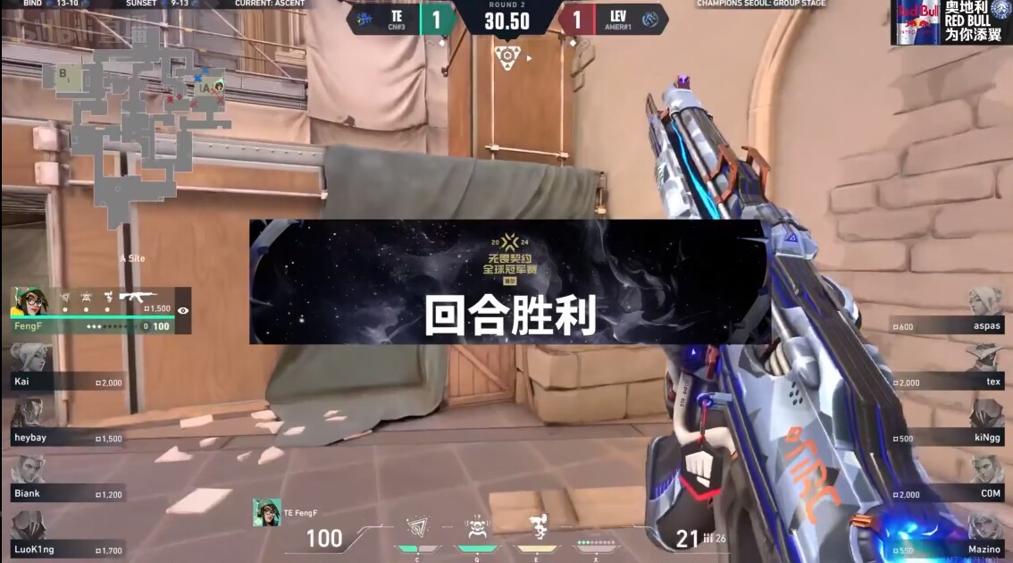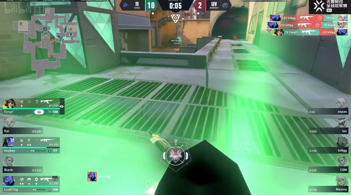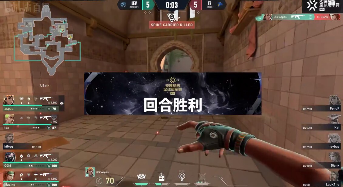 關鍵局TE 混起,fengf出色發揮架死LEV,下回合,LEV進點首殺,FengF頂住浴室連宰兩人與aspas對開大招,heybay精準補防,再度拿下一分,TE 11-7 領先