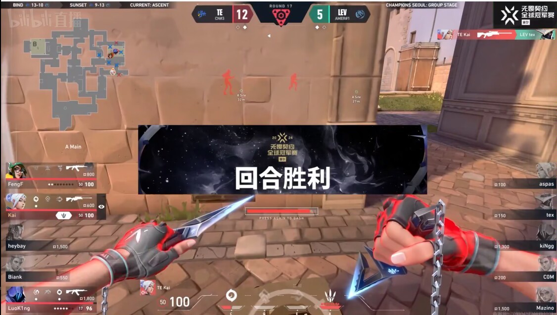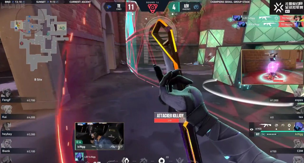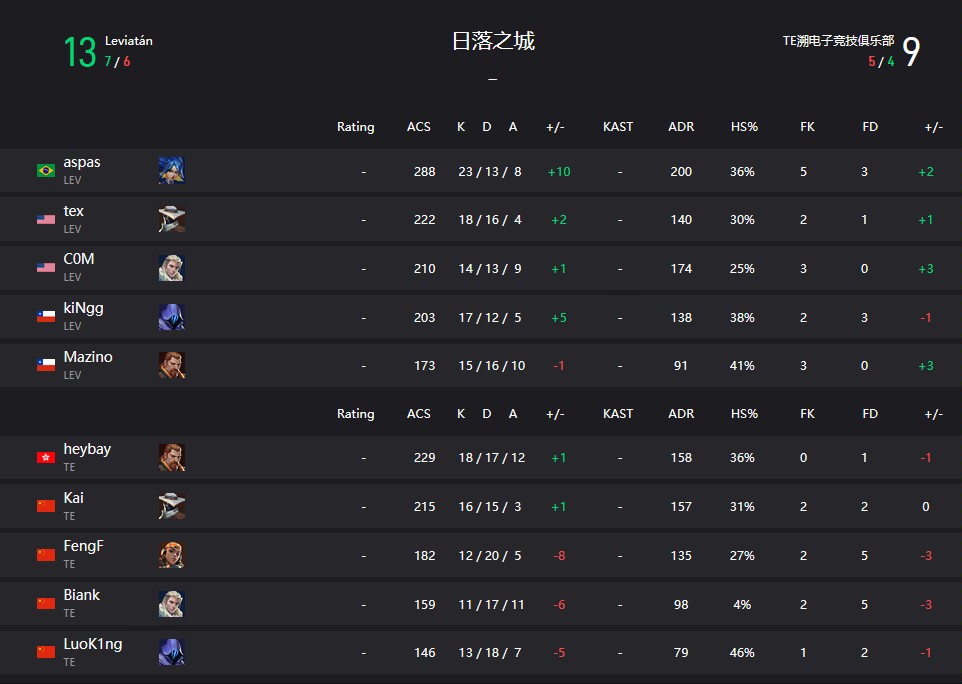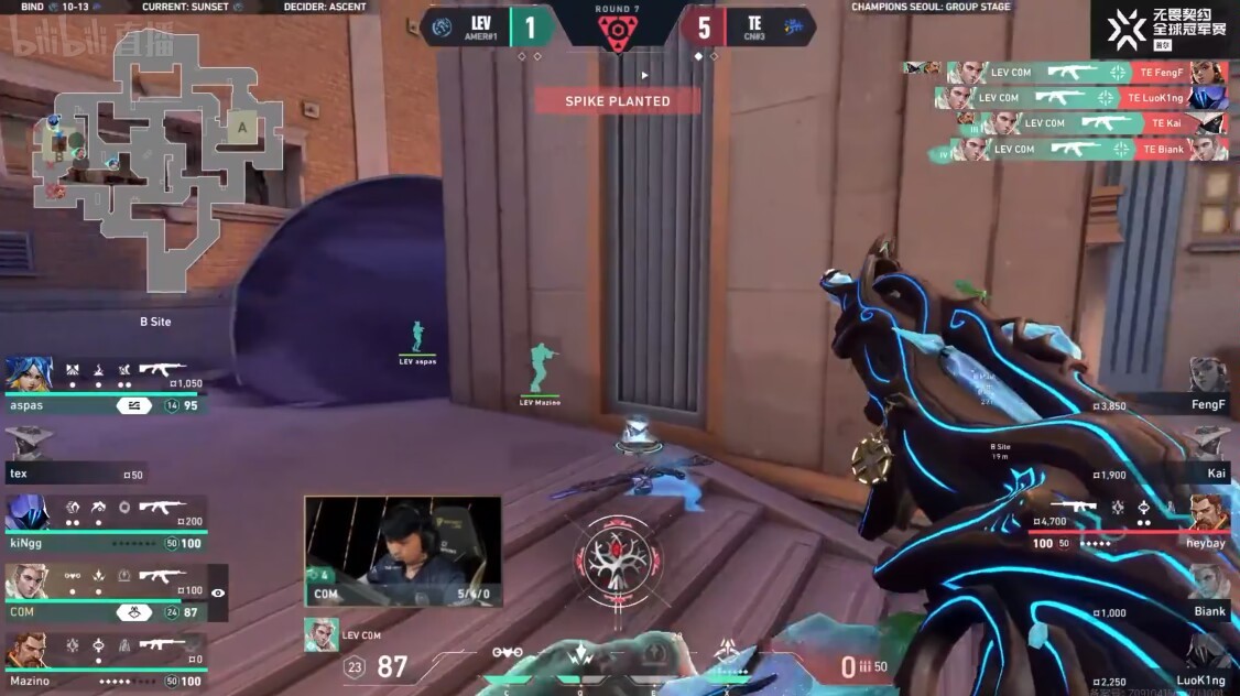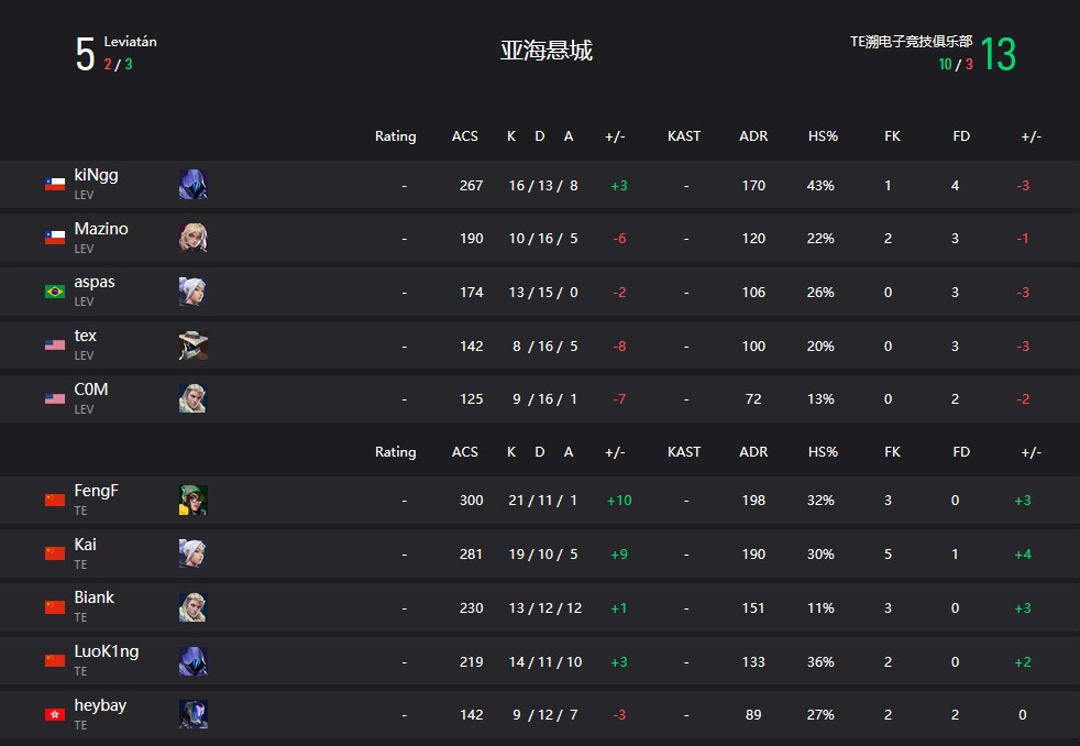 關鍵局TE 混起,fengf出色發揮架死LEV,下回合,LEV進點首殺,FengF頂住浴室連宰兩人與aspas對開大招,heybay精準補防,再度拿下一分,TE 11-7 領先