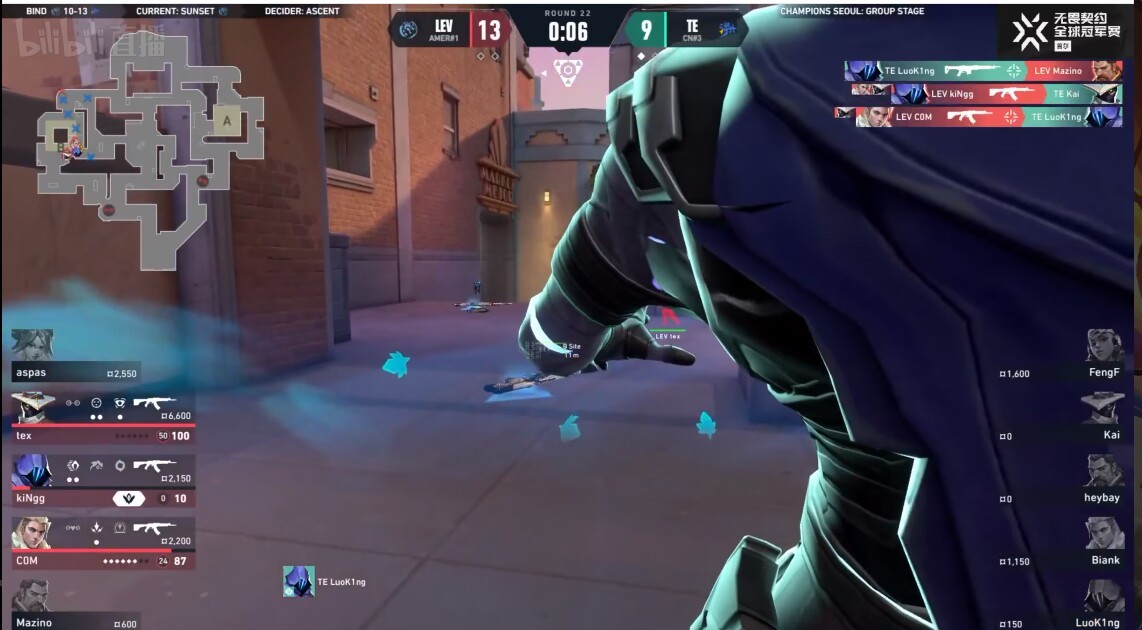 比分來到TE 9-6 LEV,LEV叫出暫停調整,調整後LEV搏命局,aspas三殺挽救團隊,TE也叫出最後的暫停應對。
