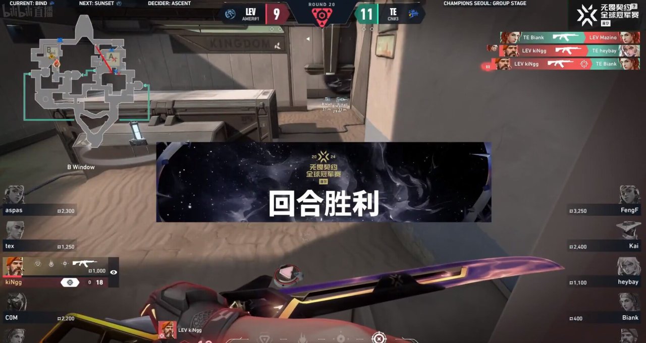 下半場com手槍局再度發揮拯救團隊,LEV追回兩分,TE長槍局滿經濟獲勝,關鍵局,kiNgg個人能力再度發揮,四殺救世,幫助LEV擺脫對手賽點。