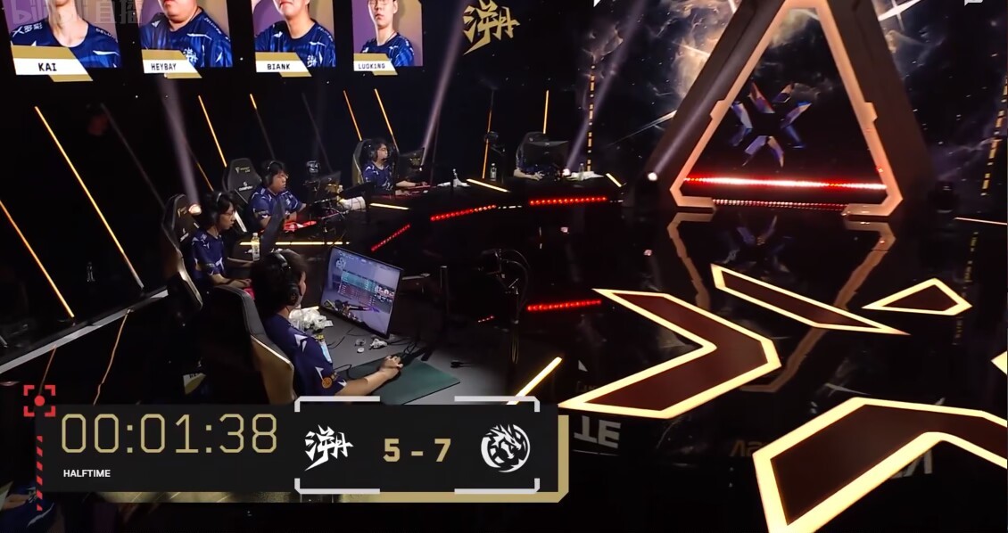 暫停回來,LEV讀圖成功,前壓浴室抓住timing,aspas三殺,雙方5-5再平,但下一回合TE大招配合,紀律拉滿再拿一分,最後一回合KAI換掉前壓的LEV兩人,開大獲取信息,TE進到A包拿下最後一分