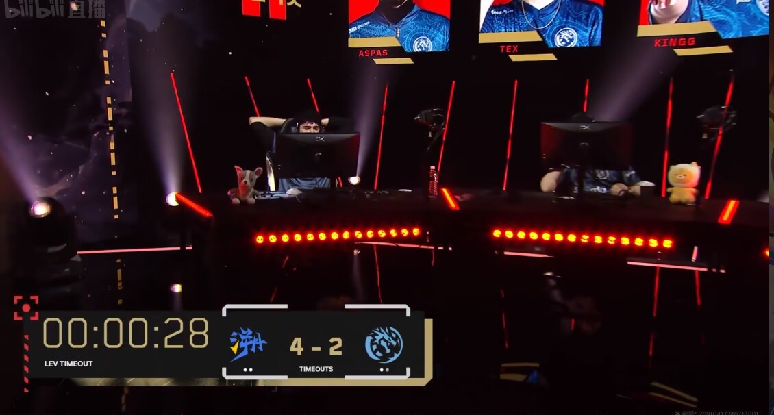 雖然aspas發揮神勇,但Kai關鍵大狙打開局面,luoking激進前頂繞後,TEa點回防贏下兩局,LEV逐漸丟失中路掌控進入ECO局,比分來到 TE 4-2 LEV,LEV喊出暫停調整。