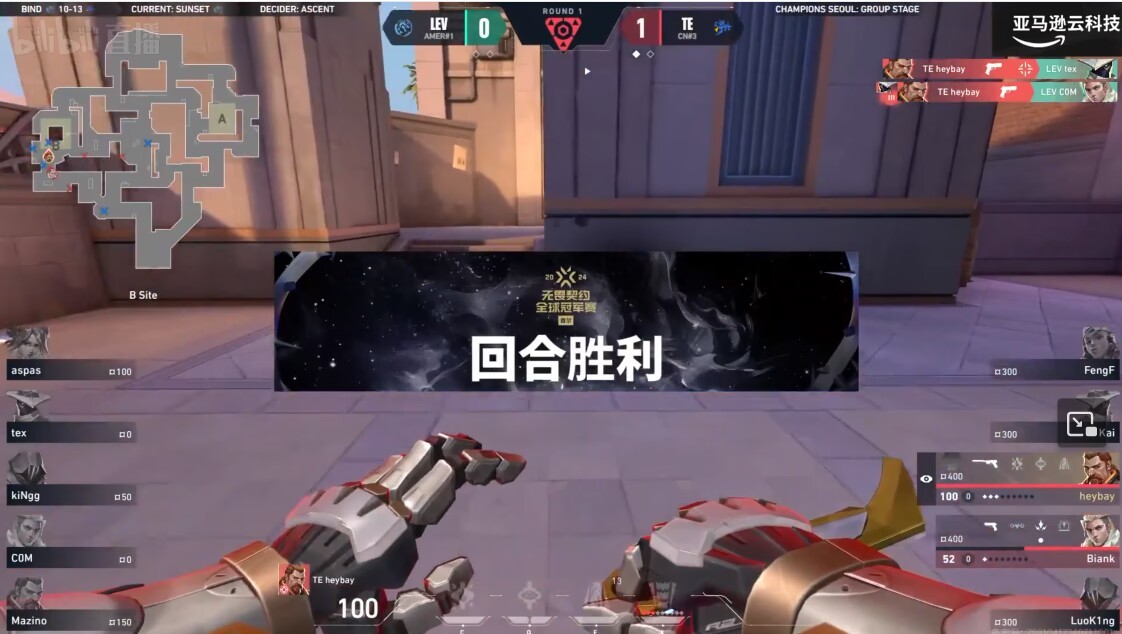 aspas發揮,LEV贏下第一次手槍局,但第二回合TE賭對點,全員發揮,aspas雖然神勇,但被kai偷掉,最後eco翻盤,TE拿回兩分且起出大狙。