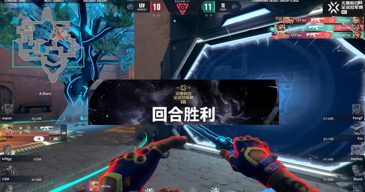 賽點局tex個人能力發揮,爲LEV獲得賽點,緊接着LEV再度進攻B點獲得勝利,捍衛自選圖,aspas的個人秀,一個人帶動了整個隊伍。